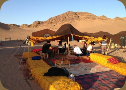 First we cross the spectacular Tizi n’Tichka Pass of the High Atlas mountains. You will pass through many Berber villages, and once in the desert, riverside oasis and barren hillsides are clustered with Kasbahs. After lunch we drive further to Zagora, with beautiful views of the Draa Valley. We will arrive there around 4 and after a short break you will ride camels into the dunes, where you will spend the night in Berber tents. After seeing a beautiful sunset you will enjoy a fantastic dinner.