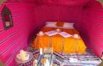Today you explore Merzouga desert deeply by visiting famous Khamlia village ,where you listen to Gnawa music played by people , originally from Sudan and Mali. In the afternoon you prepare for a camel ride across the dunes. After 1 hour camel ride we reach Merzouga desert camp where we stay overnight. You will have traditional Moroccan dinner at campfire.