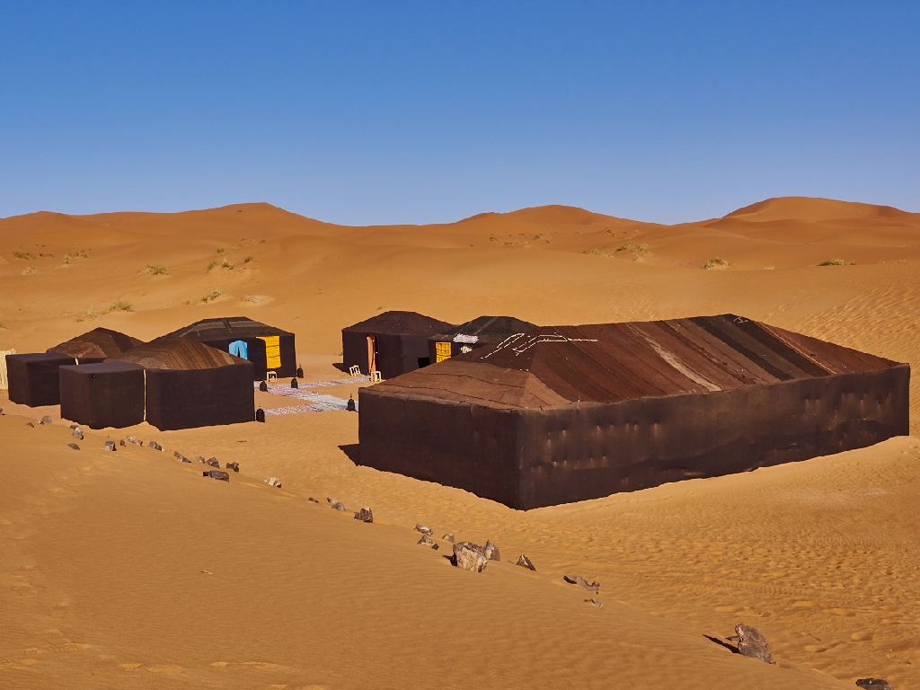 You will visit museum of Nomads in Hassilabiad, we enjoy Gnawa musicians in Khamlia village and we explore Erg Chebbi desert. Then later today you prepare for camel ride in dunes. We reach Merzouga camp , you may climb high dunes to watch the desert sunset. The traditional dinner will be served at camp. You enjoy drum music around a campfire and then we stay overnight under Sahara tents in Merzouga.