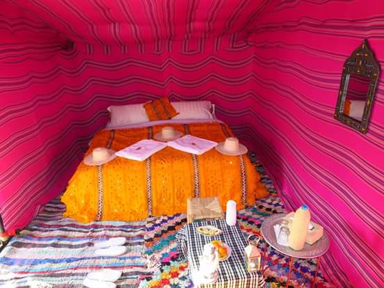 You enjoy Gnawa music in Khamlia village , we enjoy tour around the dunes of Erg Chebbi. We stop in Hassilabiad. Later today we prepare for camel trek to desert camp. After 1 hour camel ride we climb the high dune to watch the desert sunset. You will have Berber dinner at campfire and our friendly Merzouga guides will play drum music for us. We spend the night under desert tents.